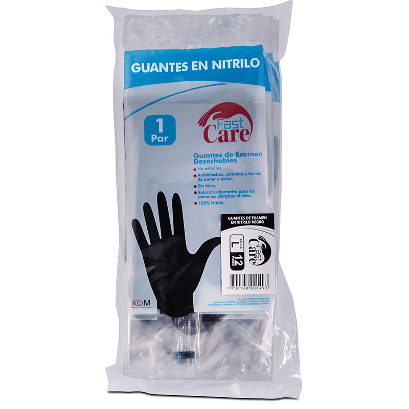 GUANTE FAST CARE NITR.NEGRO T.L 12PAR